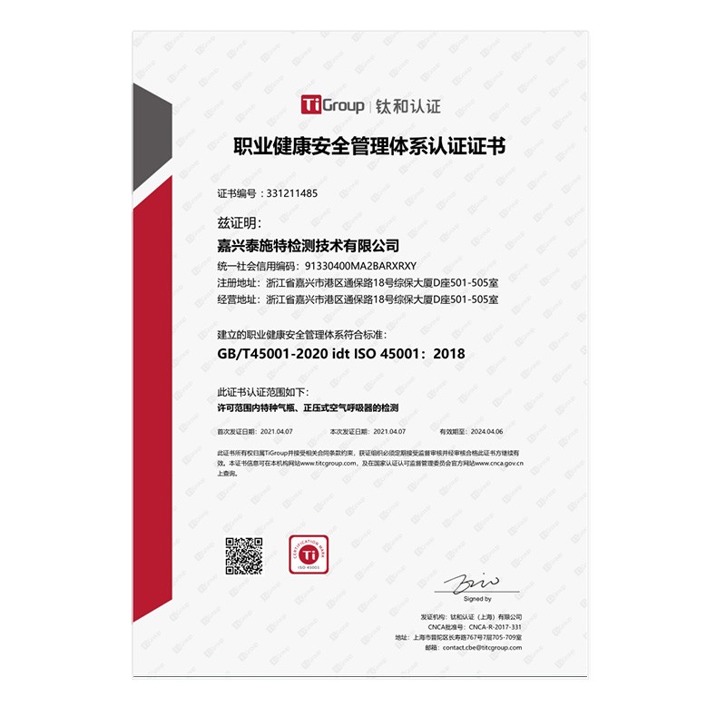 嘉兴泰施特检测技术有限公司OHSMS-证书中文